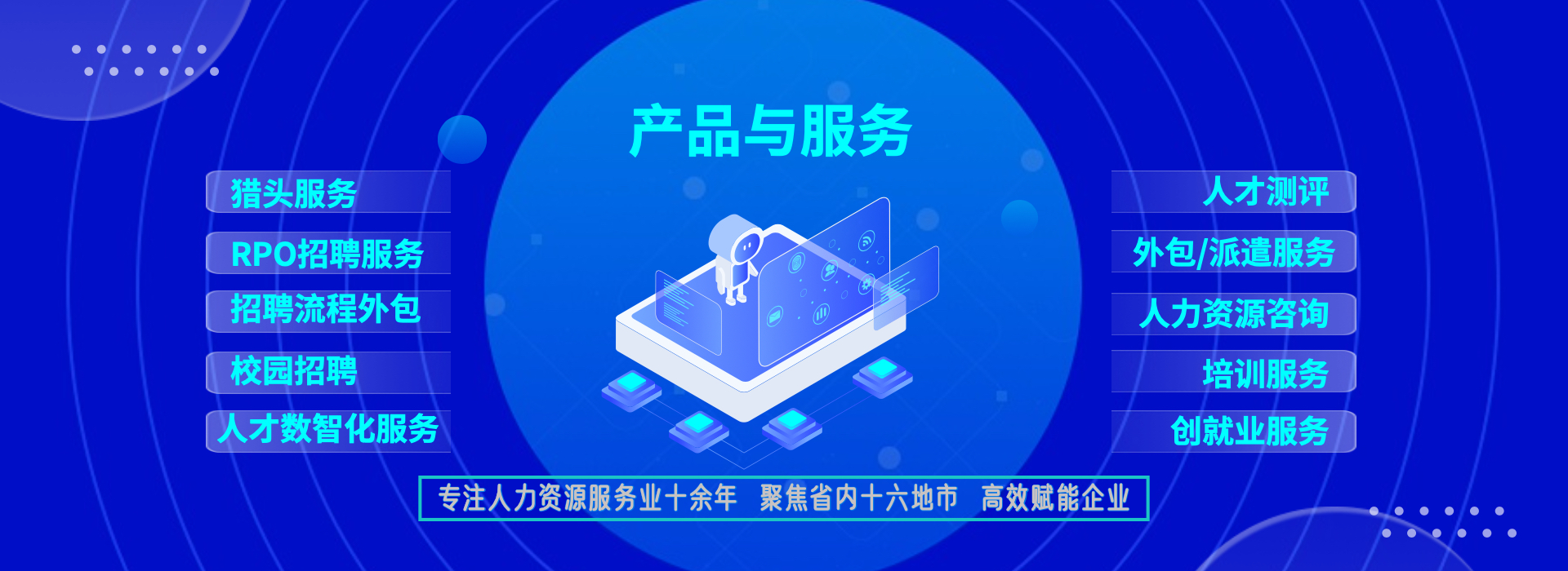 一站式服務(wù),降低企業(yè)管理成本 事務(wù)外包:人事事務(wù)外包,實(shí)習(xí)生招聘與管理外包 崗位外包:IT技術(shù)、財(cái)務(wù)/會(huì)計(jì)、行政文秘類和市場(chǎng)類崗位 項(xiàng)目外包:校園招聘外包、招聘流程外包、社交媒體運(yùn)維外包、設(shè)計(jì)創(chuàng)意外包 業(yè)務(wù)流程外包:物業(yè)管理項(xiàng)目外包、零售快消行業(yè)的營(yíng)銷服 務(wù)外包、倉儲(chǔ)物流業(yè)的倉儲(chǔ)與配送外包、O2O地推營(yíng)銷外包、 呼叫中心外包等